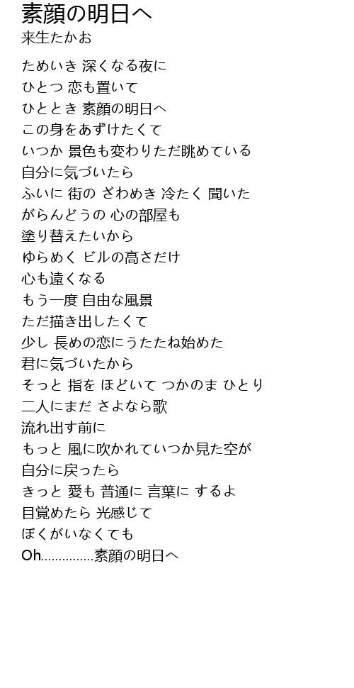 | ふいに 街の ざわめき 冷たく 聞いた | |