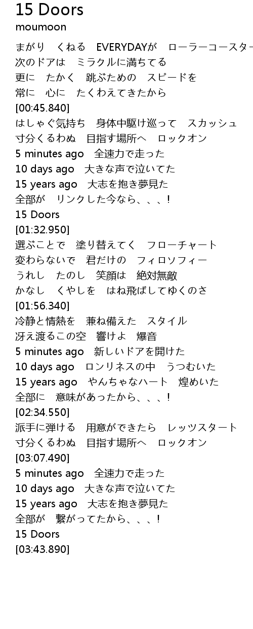[02:21.360] 15 years ago やんちゃなハート 煌めいた