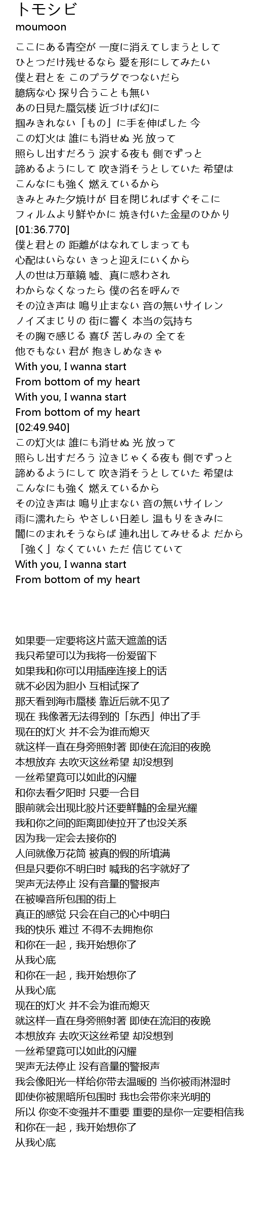 | [02:58.790] | 照らし出すだろう 泣きじゃくる夜も 側でずっと |