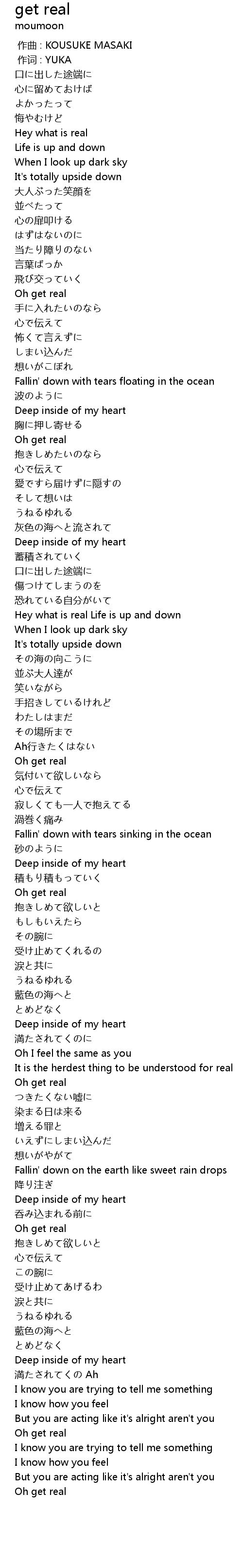 | [00:21.83] | Hey what is real |