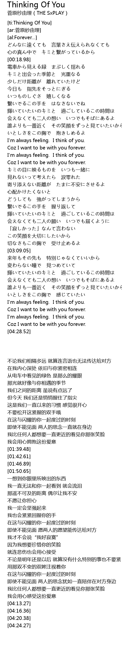 | [03:48.26] | 会えなくても二人の想い いつでもそばにあるよ |