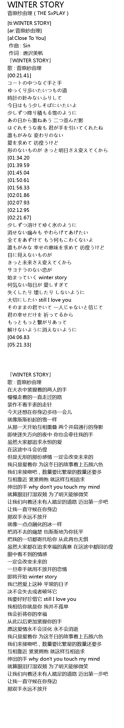 | [04:29.24][01:34.20] | jun ai se winter story |