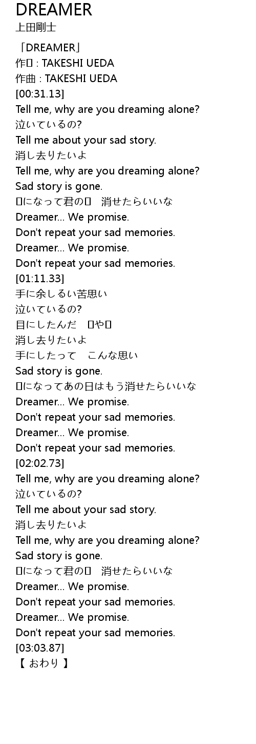 | [00:17.89] | 作�∶TAKESHI UEDA |