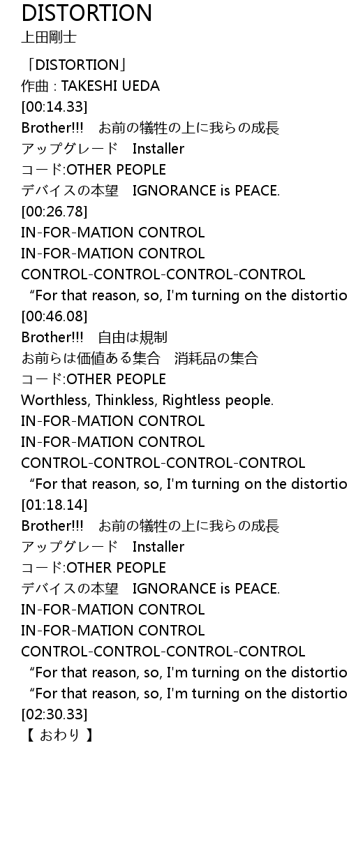 | [02:01.60] | デバイスの本望 IGNORANCE is PEACE. |