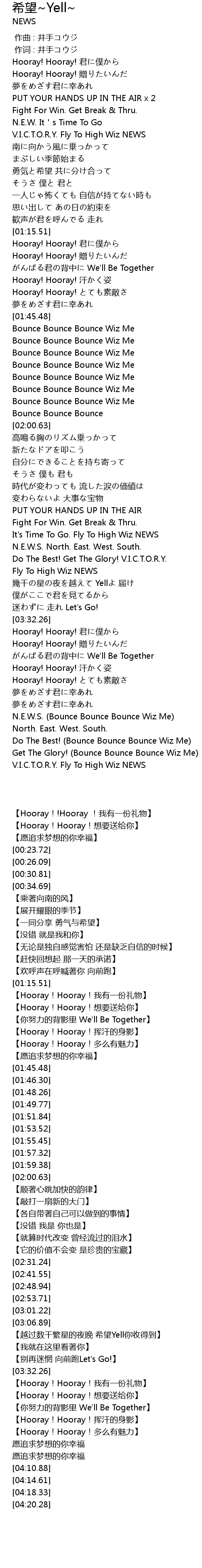 | [04:10.88] | N.E.W.S. (Bounce Bounce Bounce Wiz Me) |