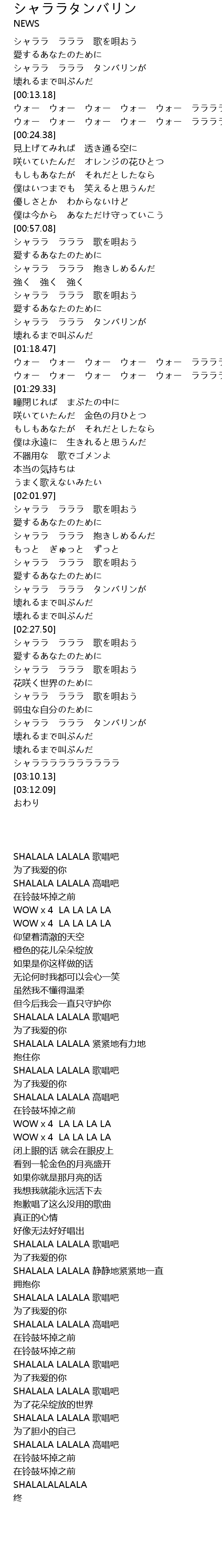 シャララ ラララ タンバリンが |