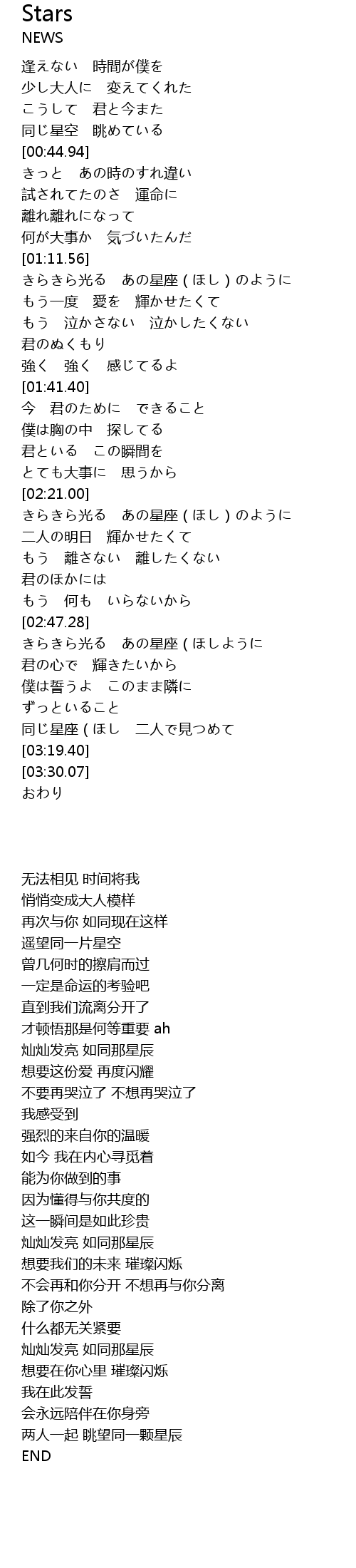 | [03:12.66] | 同じ星座(ほし 二人で見つめて |