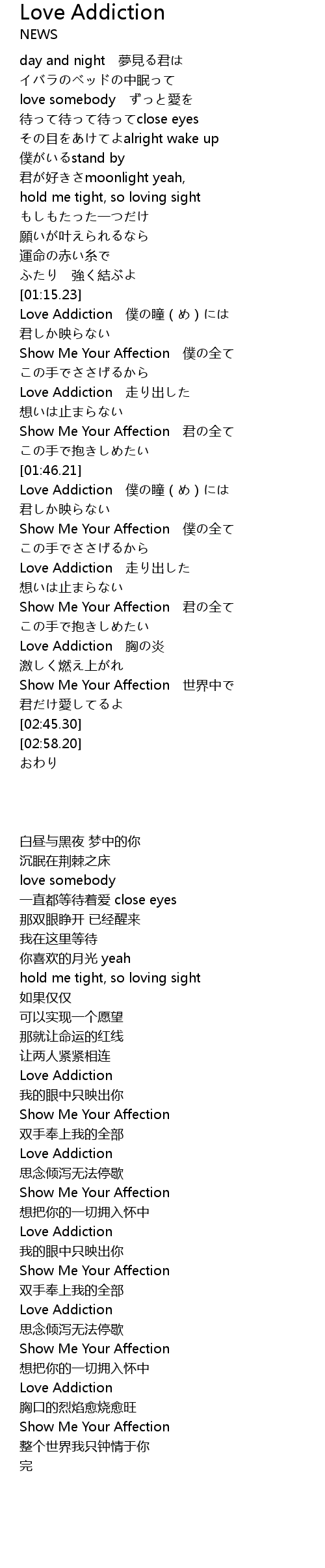 | [02:30.39] | Love Addiction 胸の炎 |