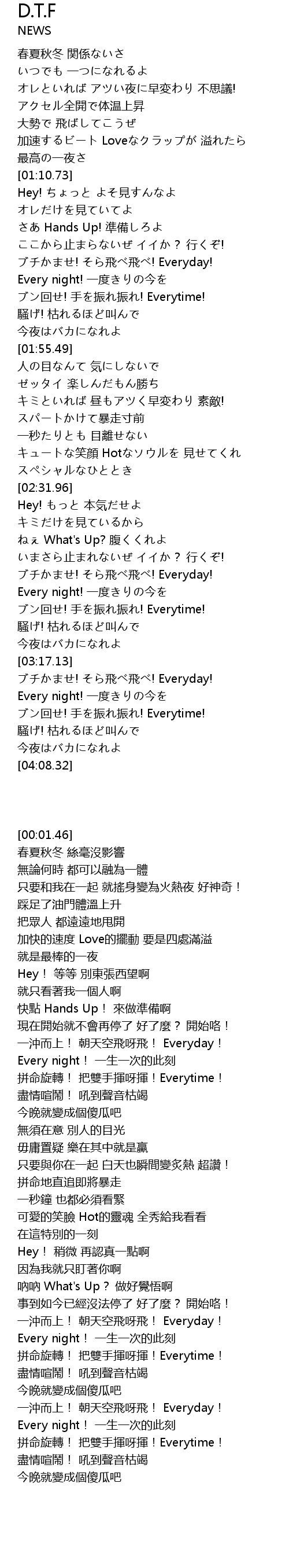 | [01:42.14] | ブン回せ! 手を振れ振れ! Everytime! |