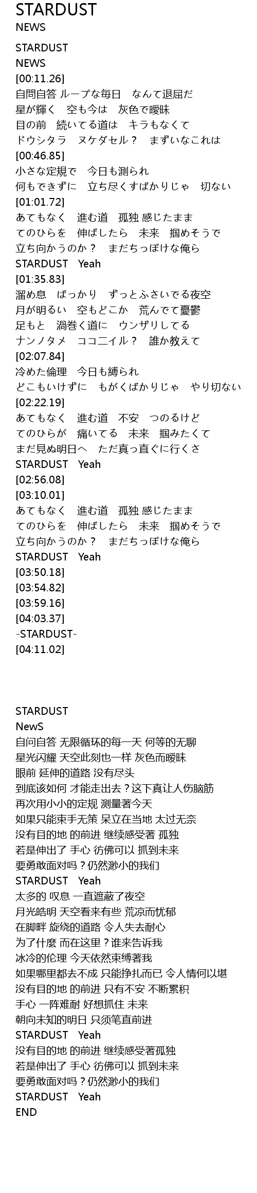 | [01:02.09] | あてもなく 進む道 孤独 感じたまま |