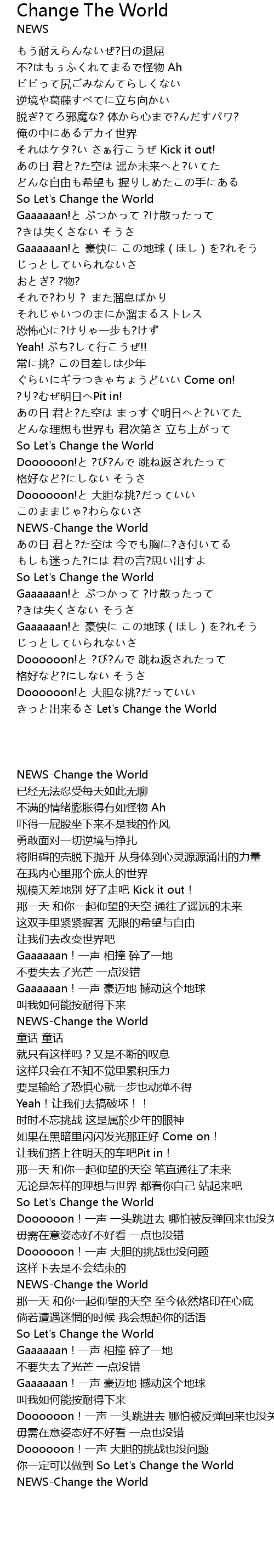 | [04:04.630] | きっと出来るさ Let's Change the World |