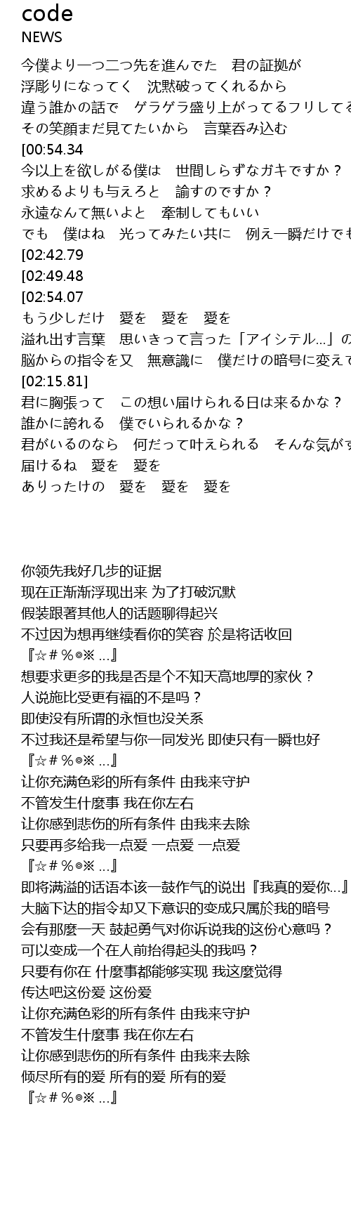 | [00:21.42][00:54.34][01:30.85][03:10.41] | NEWS-code |