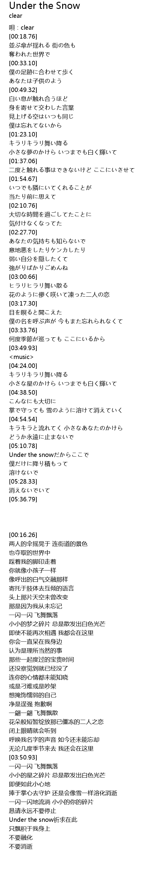 | [00:16.26] | 唄:clear |
