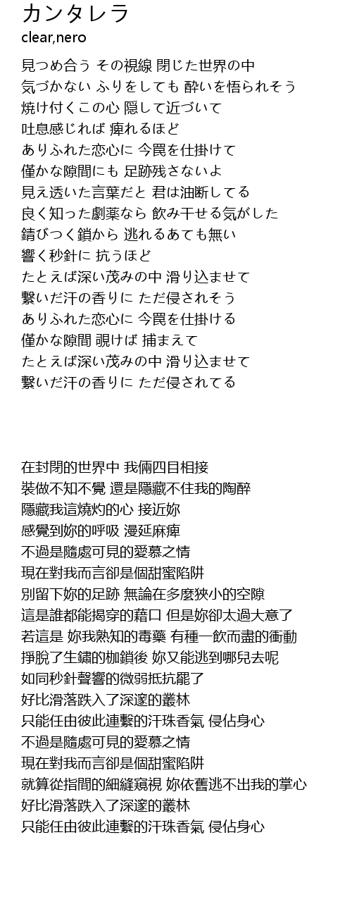 | [00:13.420] | 見つめ合う その視線 閉じた世界の中 |