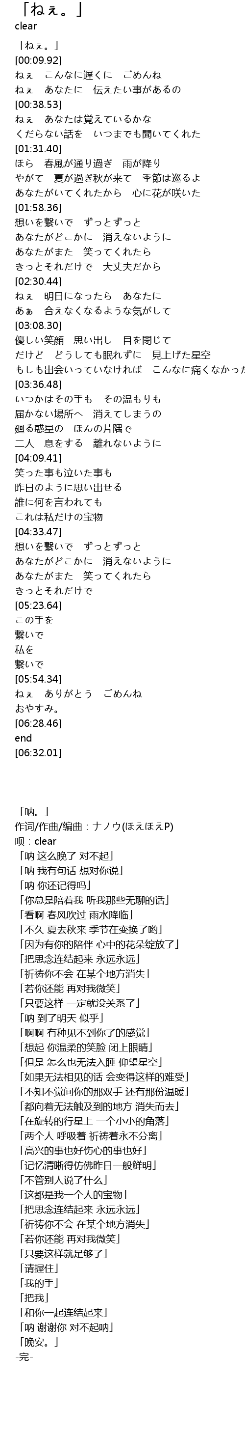 | [06:12.09] | ねぇ ありがとう ごめんね |