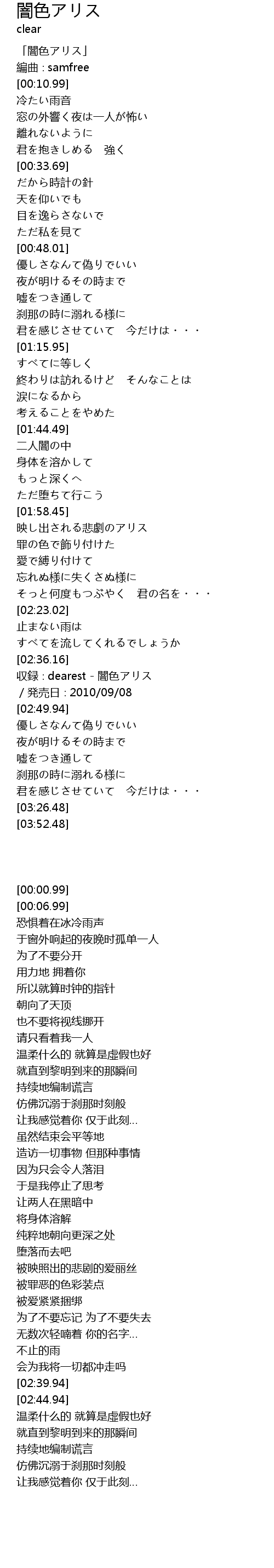 | [02:39.94] | 収録∶dearest - 闇色アリス |