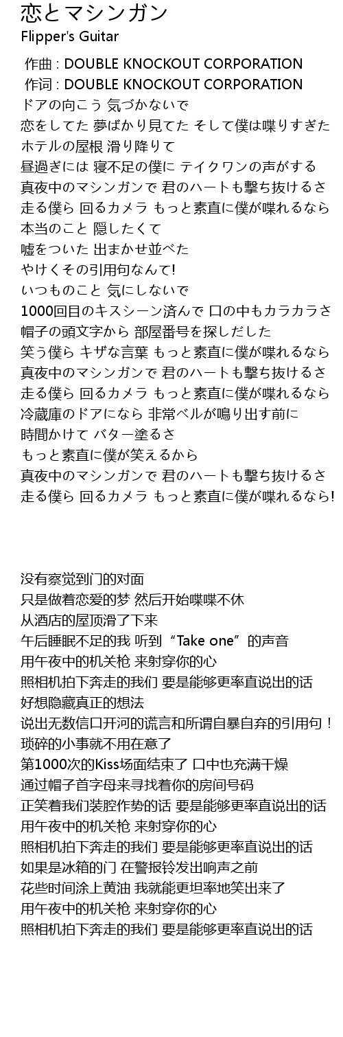 | [00:01.00] | zuò cí : DOUBLE KNOCKOUT CORPORATION |
