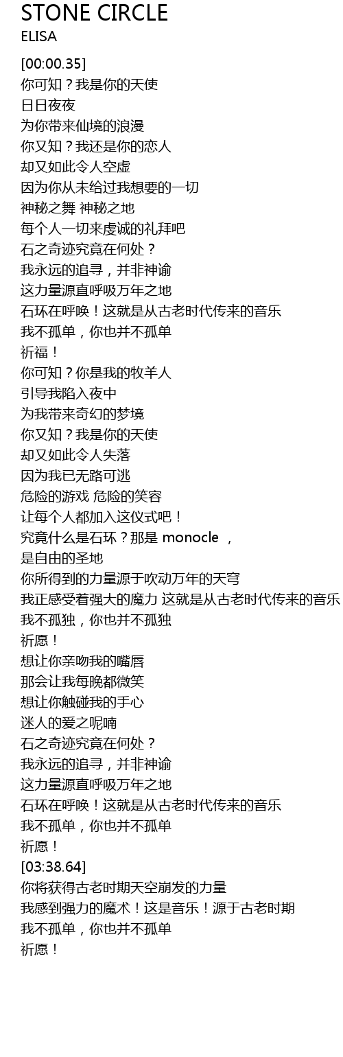 | [03:24.31] | 石环在呼唤!这就是从古老时代传来的音乐 |