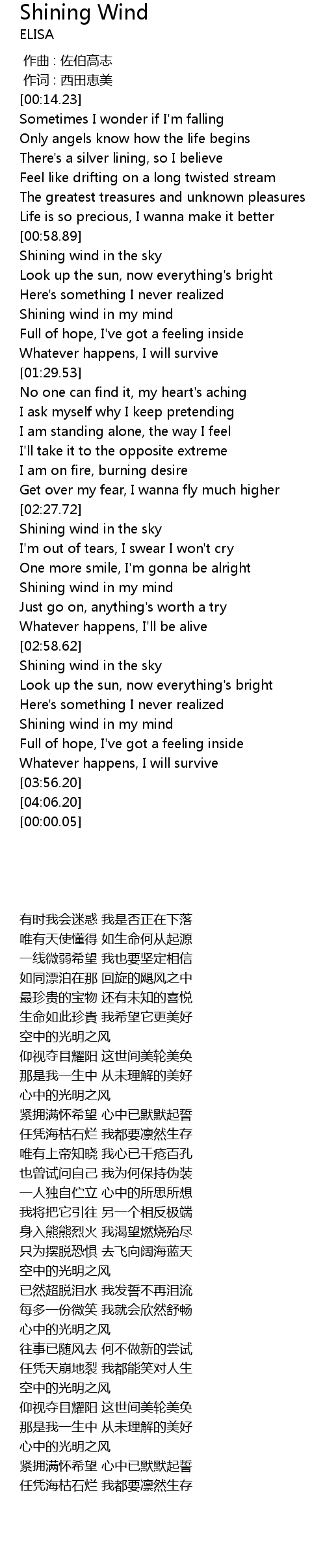 | [00:16.23] | Sometimes I wonder if I' m falling |