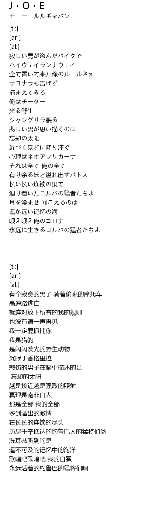 | [02:26.73] | 永远に生きるヨルバの猛者たちよ |