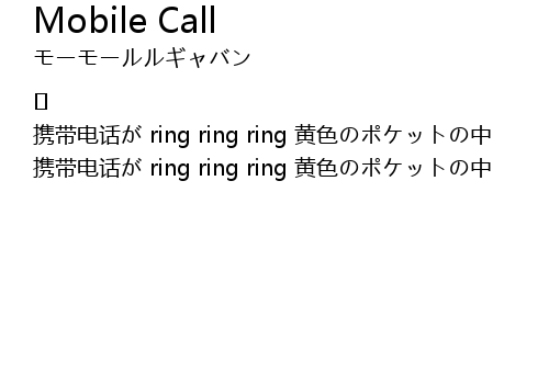 | 携带电话が ring ring ring 黄色のポケットの中 | |
