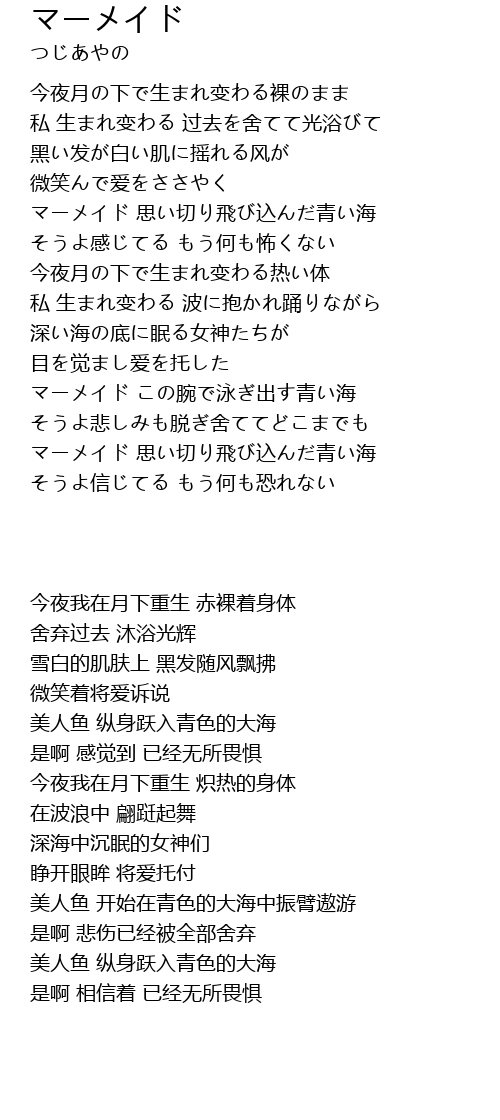 | [00:47.707] | マーメイド 思い切り飛び込んだ青い海 |