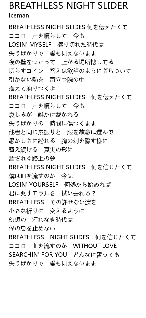 | Song | BREATHLESS NIGHT SLIDER |