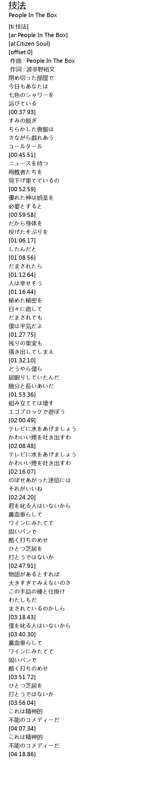 | [00:00.00] | zuo qu : People In The Box |
