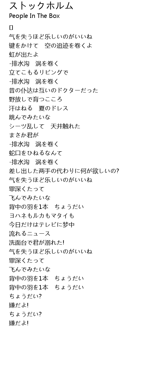 | Song | ストックホルム |