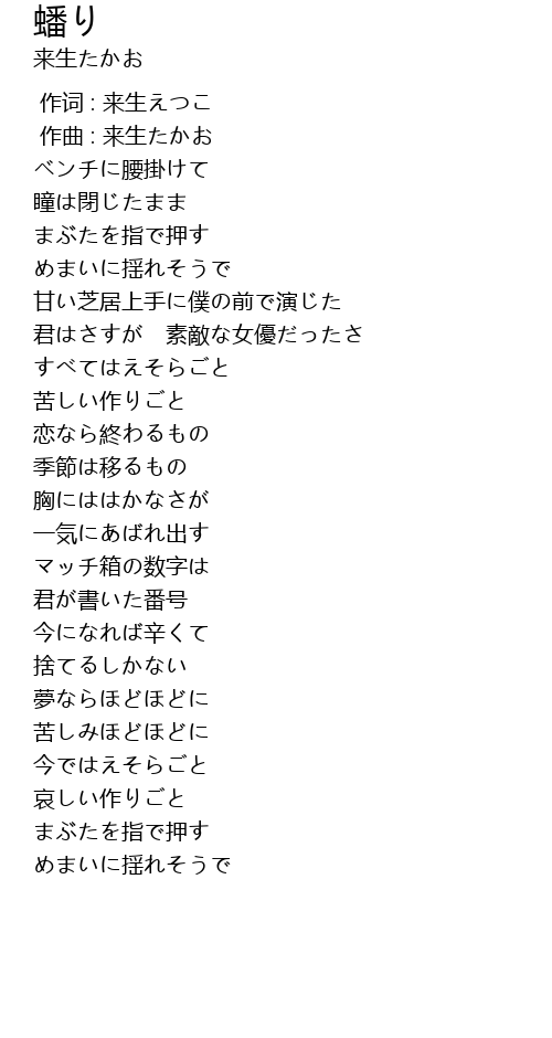 | [00:01.000] | 作曲 : 来生たかお |