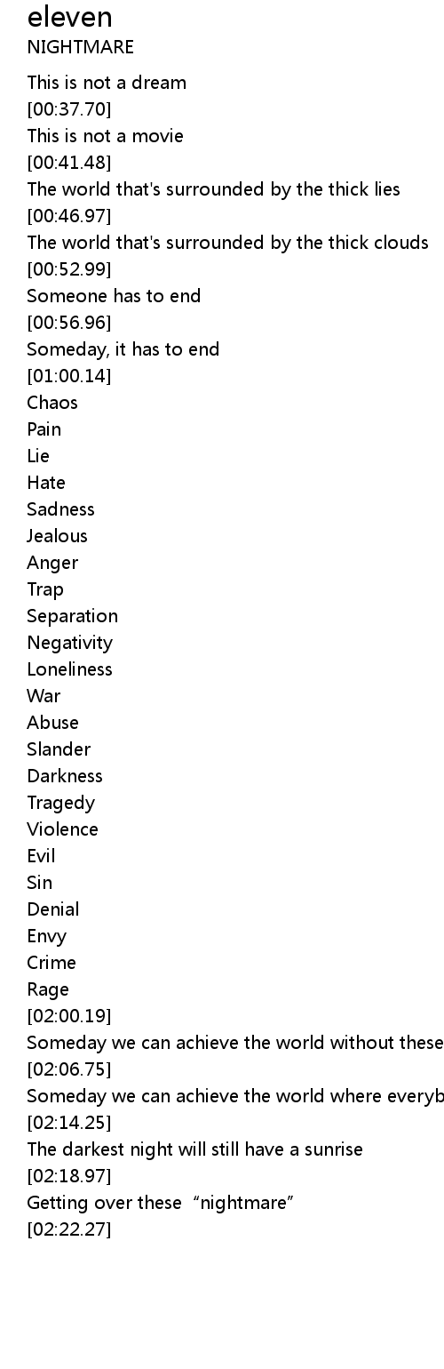 | [02:19.79] | Getting over these" nightmare" |