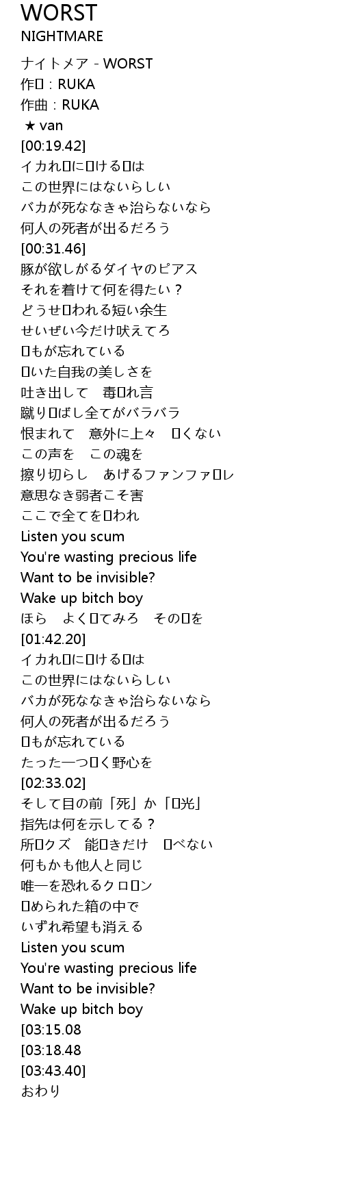 | [00:00.00] | ナイトメア - WORST |
