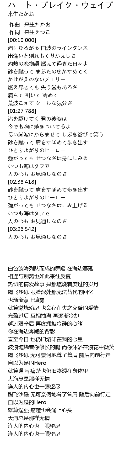 | [00:38.718] | 灼熱の恋物語 燃えて過ぎた日々よ |