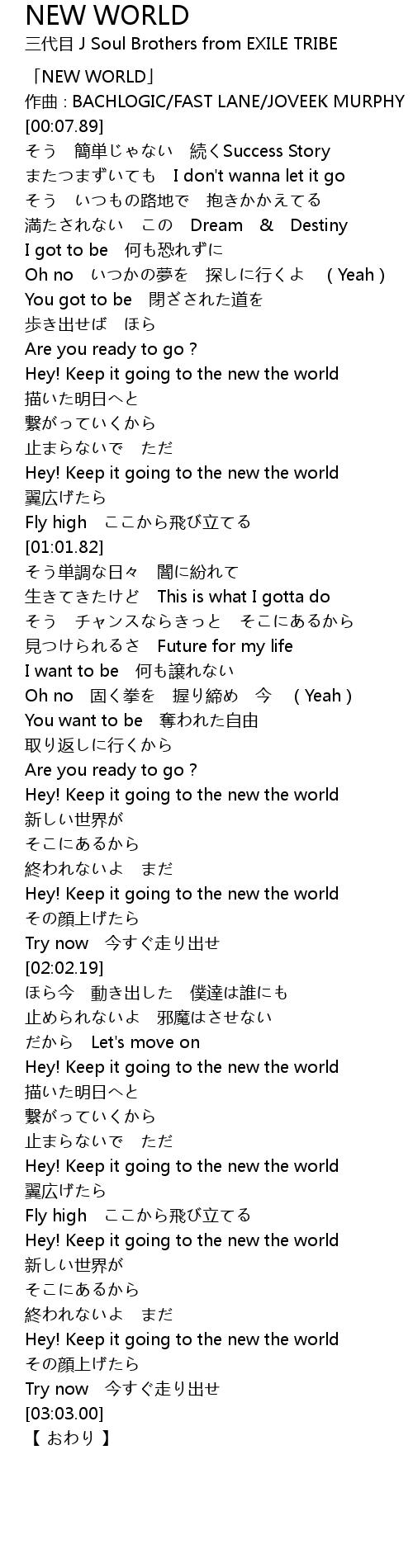 | [00:43.69] | Hey! Keep it going to the new the world |