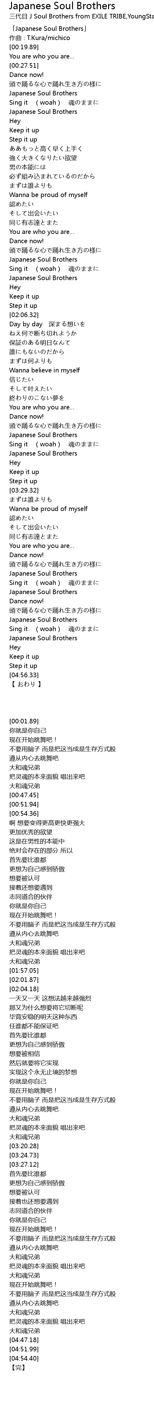| [04:34.66] | Japanese Soul Brothers |