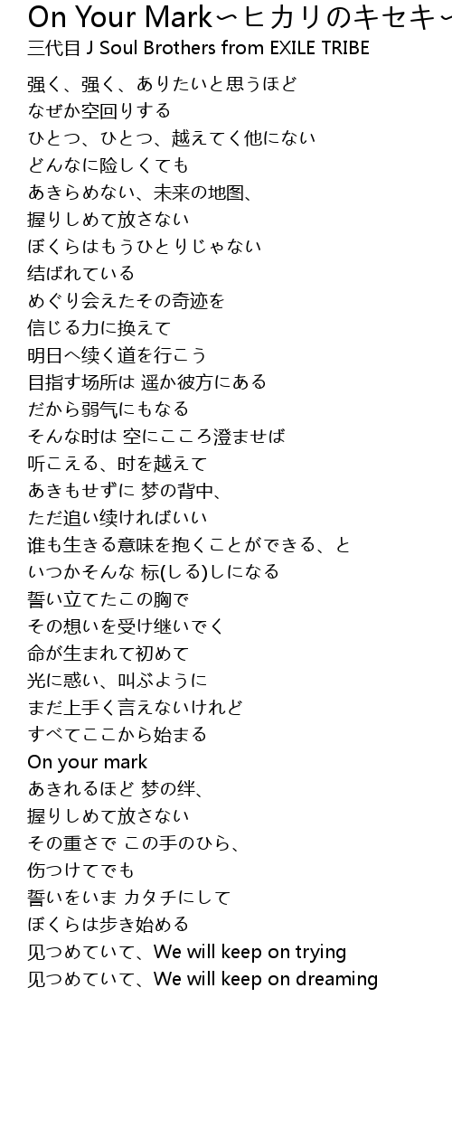 | Song | On Your Mark〜ヒカリのキセキ〜 |