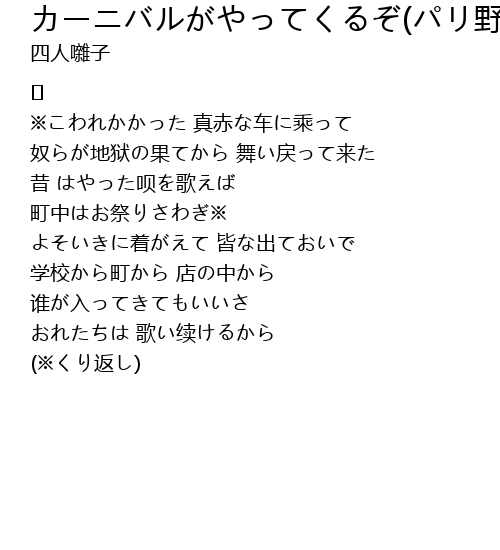 | Song | カーニバルがやってくるぞ(パリ野郎ジャマイカへ飞ぶ) |