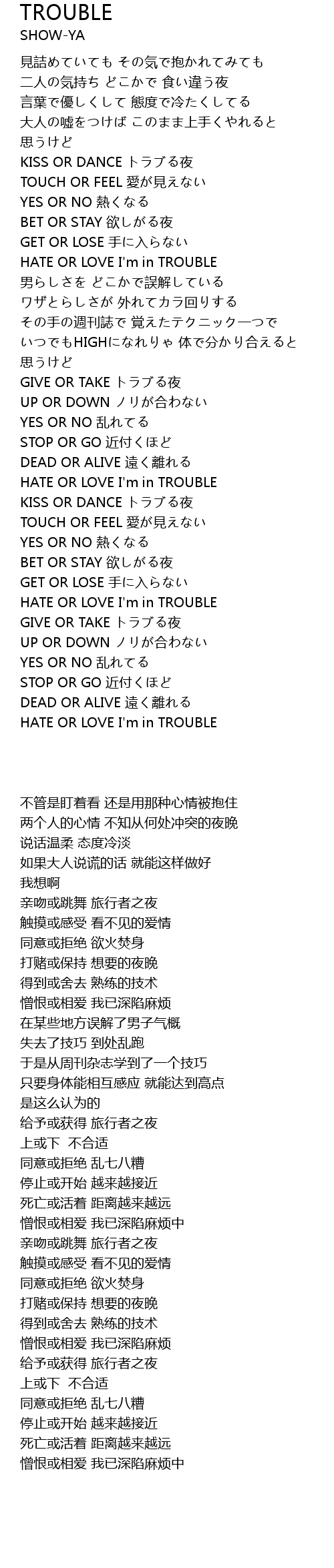 | [02:24.864] | HATE OR LOVE I' m in TROUBLE |
