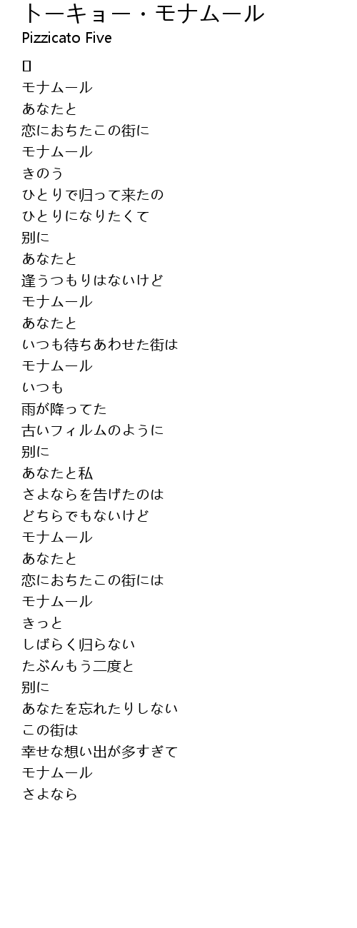 | Song | トーキョー・モナムール |