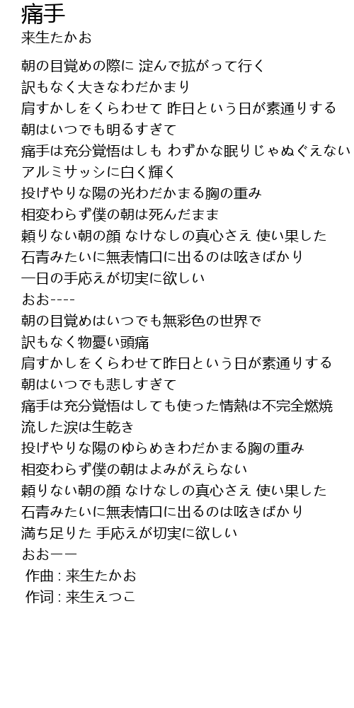 | [00:00.000] | 作词 : 来生えつこ |