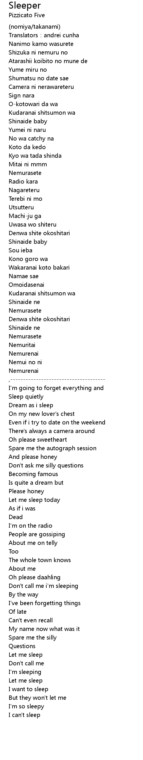 | Song | Sleeper |