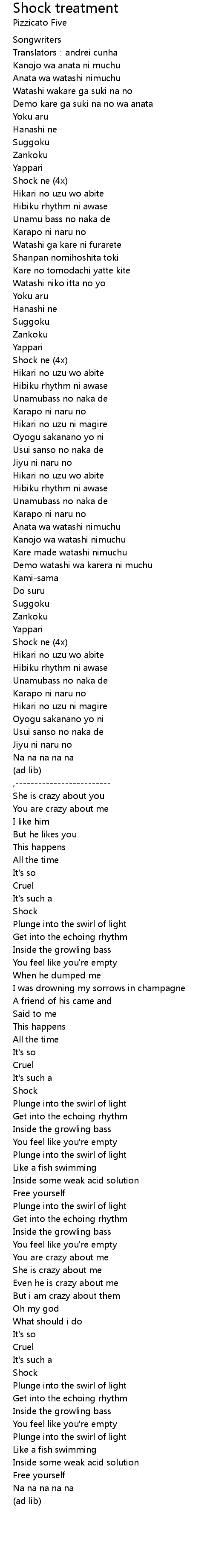 | Song | Shock treatment |
