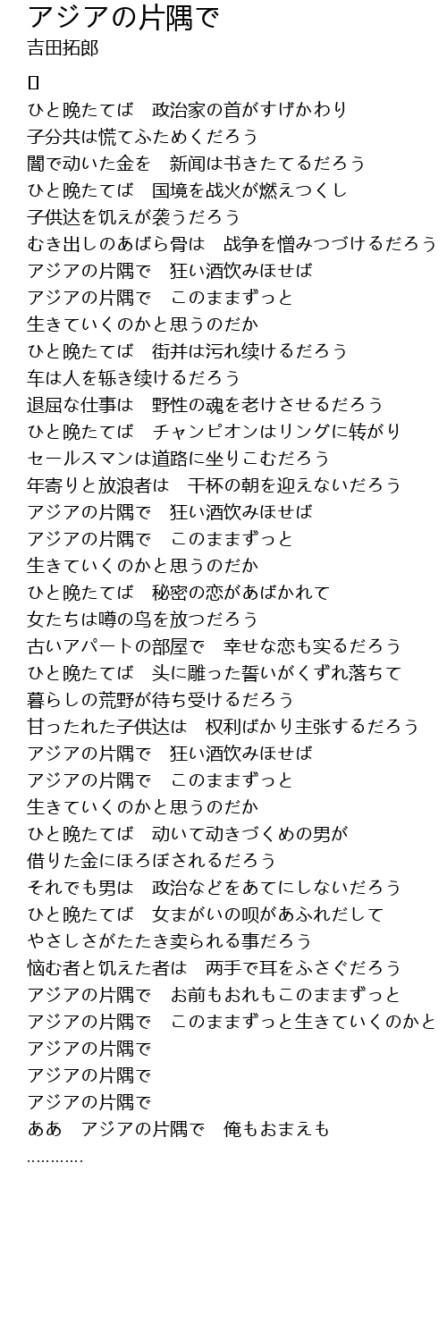 | アジアの片隅で 狂い酒饮みほせば | |