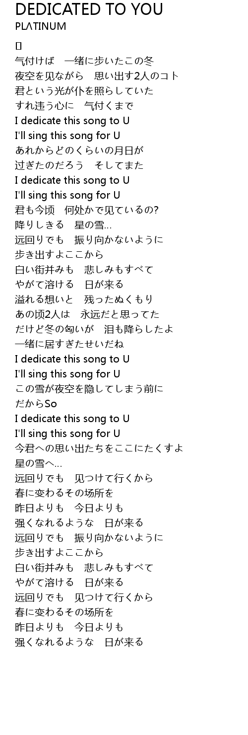 | Song | DEDICATED TO YOU |