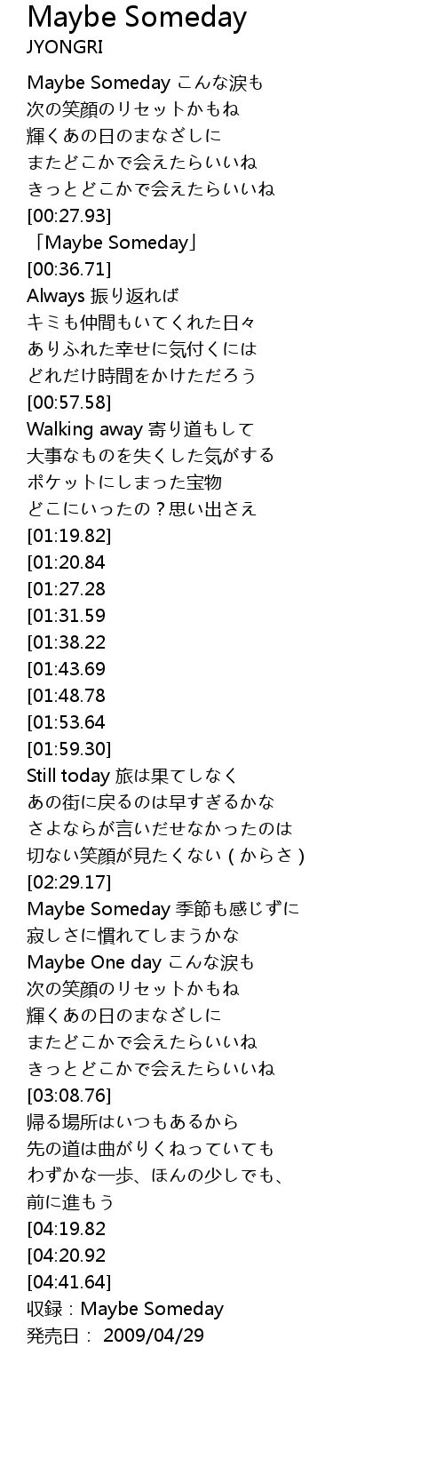 | [03:41.22][01:20.84] | Maybe Someday pu |