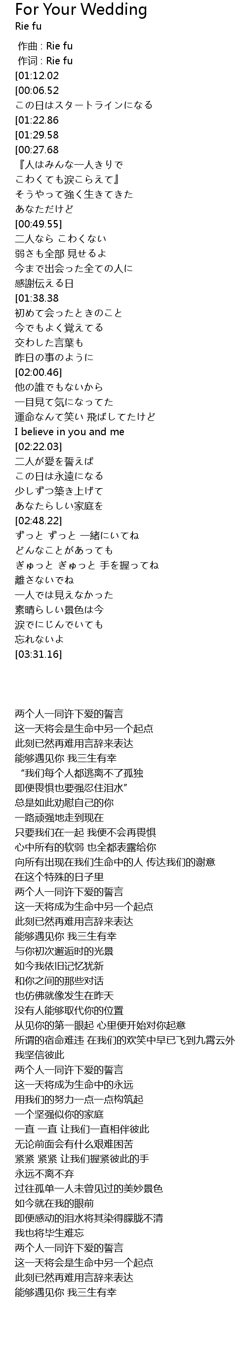 | [03:32.30][01:12.02][00:01.22] | 二人が愛を誓えば |