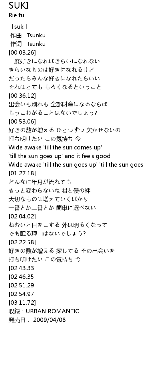 | [03:14.72] | 収録:URBAN ROMANTIC |