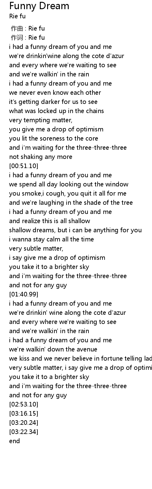 | [00:55.39] | i had a funny dream of you and me |