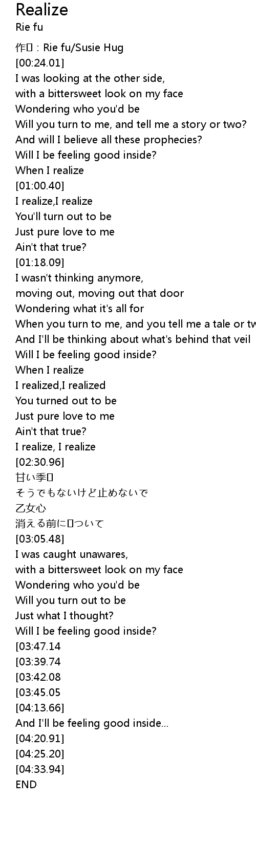 | [02:23.32] | I realize, I realize |