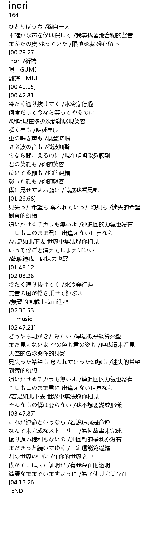 | [00:29.96] | inori /祈禱 |